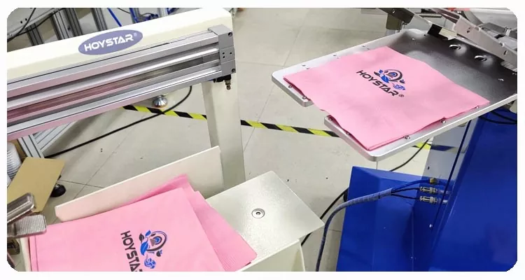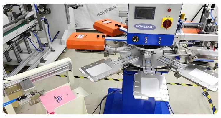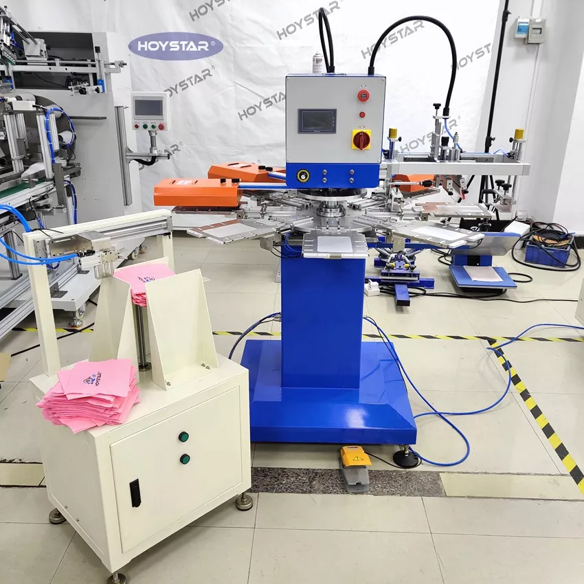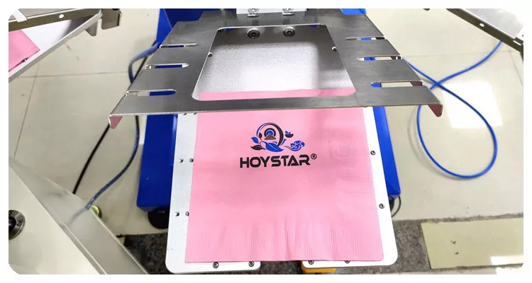 HOYSTAR è un produttore e fornitore affidabile in Cina; questa macchina serigrafica automatica per tovaglioli a 2 colori HOYSTAR è progettata specificamente per la stampa completamente automatica su tovaglioli. Il suo processo di stampa ottimizzato si svolge come segue: caricamento manuale dei tovaglioli sulla macchina - stampa automatica del primo colore - asciugatura automatica - stampa automatica del secondo colore - asciugatura automatica - scarico automatico - e raccolta automatica dei prodotti.