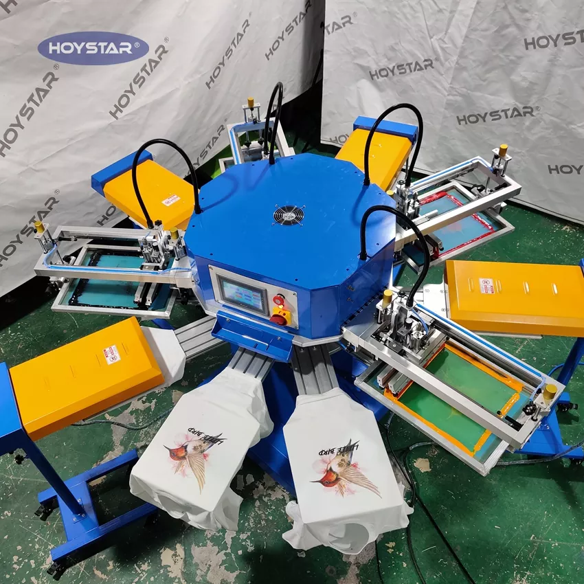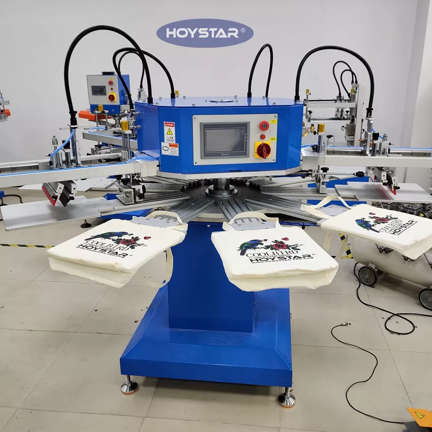 In qualità di produttore e fornitore professionale, questa macchina serigrafica automatica per magliette a 4 sacchetti HOYSTAR è progettata specificamente per l'industria tessile. Con una produttività impressionante fino a 1200 pezzi all'ora puoi aumentare l'efficienza della tua produzione. Il design per la stampa di cartellini, etichette e borse per indumenti può modificare l'attrezzatura per stampare diversi tipi di prodotto. La macchina è dotata di un piano di lavoro rotante che consente un carico e uno scarico rapido e comodo, riducendo al minimo i tempi di inattività e massimizzando la produttività.