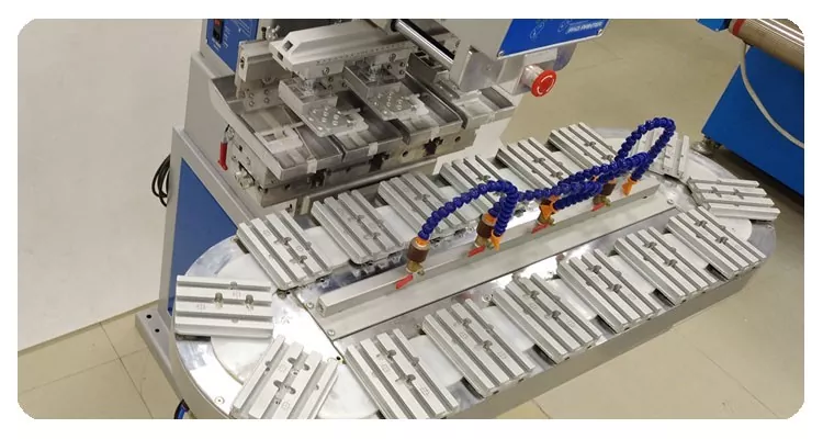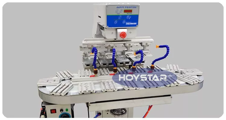 In qualità di produttore professionale in Cina, vorremmo fornirvi la stampante per tamponi a quattro colori HOYSTAR di grandi dimensioni ad alta efficienza con trasportatore. Questa macchina consente la stampa a tampone continua in quadricromia dei prodotti e può completare la registrazione del colore in un unico ciclo. Questa macchina adotta un sistema di trasporto a tavola rotante rotante, che consente il trasferimento continuo e regolare del prodotto durante tutto il processo di stampa, capacità di completare la sovrastampa completa a 4 colori in un solo ciclo rotativo. Rispetto alle stampanti tampografiche di tipo shuttle, la sua velocità è molto elevata.