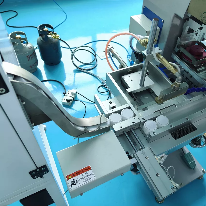 In qualità di produttore professionale in Cina, vorremmo fornirvi una macchina tampografica HOYSTAR completamente automatica a 1 colore ad alta efficienza per tappi di bottiglia. Questa macchina con alimentazione automatica, stampa automatica e scarico automatico. Garantisce un processo di produzione senza interruzioni dall'inizio alla fine. Il sistema di trasporto automatizzato integrato trasferisce agevolmente i tappi attraverso ogni fase di stampa, seguita da un'essiccazione precisa e da uno scarico ordinato. Questo funzionamento continuo e stabile garantisce stampe uniformi e di alta qualità, migliorando significativamente l'efficienza produttiva.