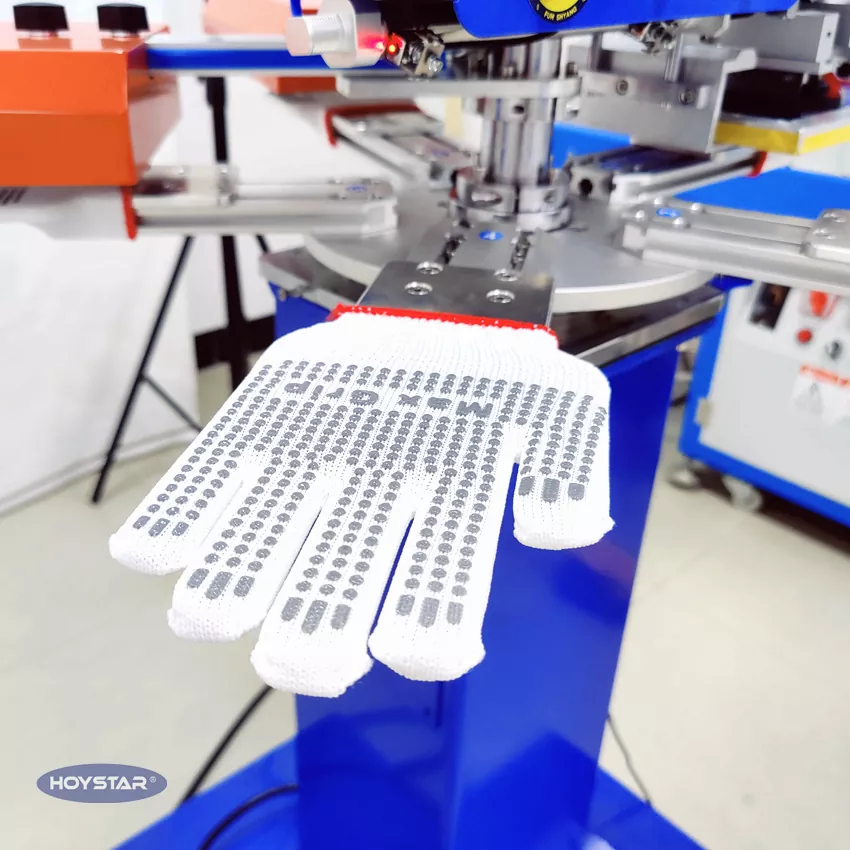In qualità di produttore e fornitore professionale, la macchina serigrafica per guanti antiscivolo ad alta velocità HOYSTAR è progettata per applicazioni nel settore della maglieria tessile. Con una velocità fino a 1000 pezzi/ora, è adatta per la stampa di guanti da lavoro, guanti di cotone, guanti a maglia, ecc. Dotato di piano di lavoro rotante, è molto comodo caricare e scaricare i guanti. Controllo touch screen PLC, molto facile da usare. La macchina dotata di sistema di asciugatura può asciugare bene il silicone e l'inchiostro.