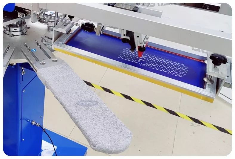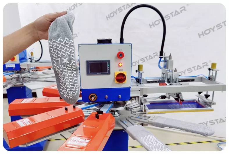 La nostra macchina serigrafica antiscivolo per calzini è progettata per calzini antiscivolo di alta qualità come calzini per neonati, calzini per animali domestici, calzini per adulti, calzini da calcio, calzini antiscivolo. Adatto a produttori specializzati in calzini sportivi, medici, per bambini e yoga da acquistare per la stampa.