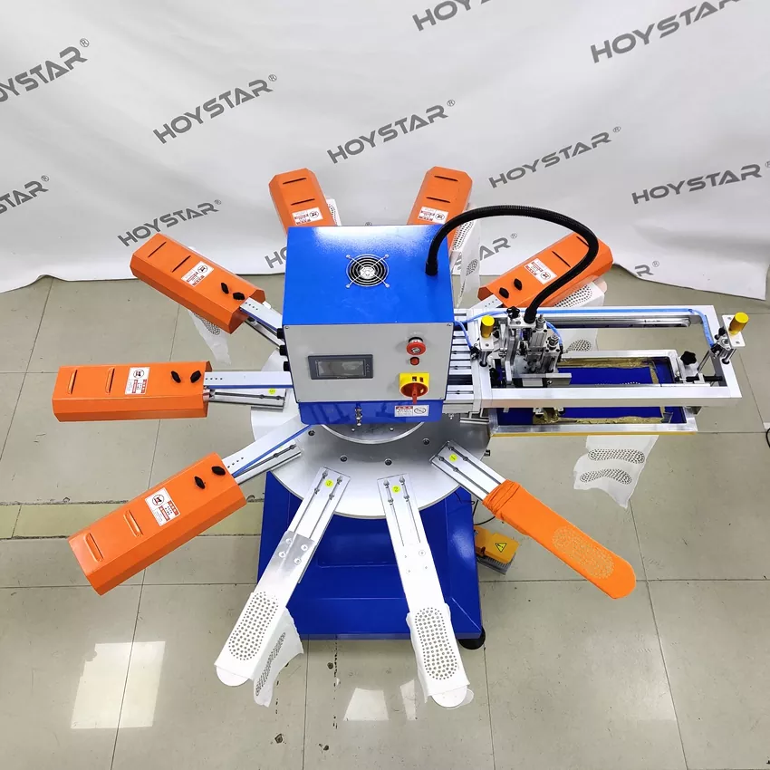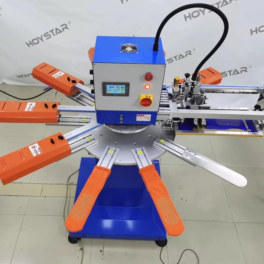 In qualità di produttore e fornitore professionale, la macchina serigrafica ad alta velocità HOYSTAR per calzini è progettata per applicazioni nel settore della maglieria tessile. Con una velocità fino a 1000 pezzi/ora, è adatta per la stampa di calzini antiscivolo, calzini per bambini, calzini per adulti, calzini da calcio, ecc. Dotato di tavolo di lavoro rotante, è molto comodo caricare e scaricare calzini. Controllo touch screen PLC, molto facile da usare. La macchina dotata di sistema di asciugatura può asciugare bene il silicone e l'inchiostro.